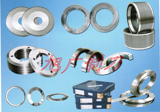 分切刀片即是圆形刀片,主要用于胶带、纸张、薄膜、金、银箔、铝箔、铜箔等物品的分切,要求刀片切断阻力最小,耐磨损性最大。选料:LD,SKD-11,SKH-51,9CrSi,Cr12Mov,W6Mo5CrV2,W18Cr4V等.